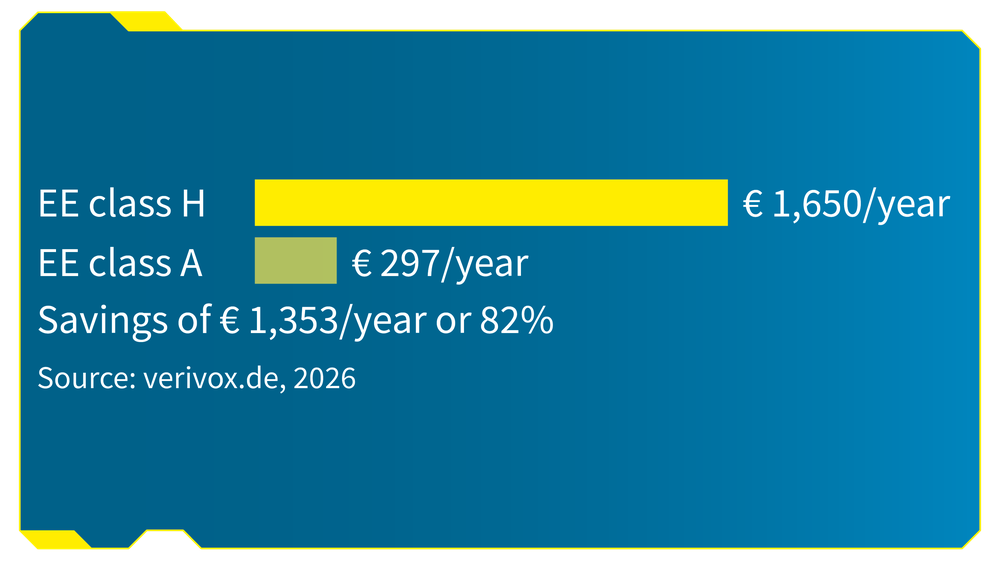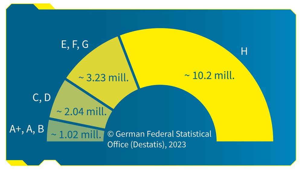 There are 16.5 million residential buildings in Germany. Over 60% of these have the lowest Energy efficiency class H.