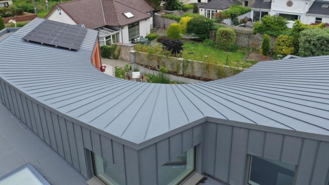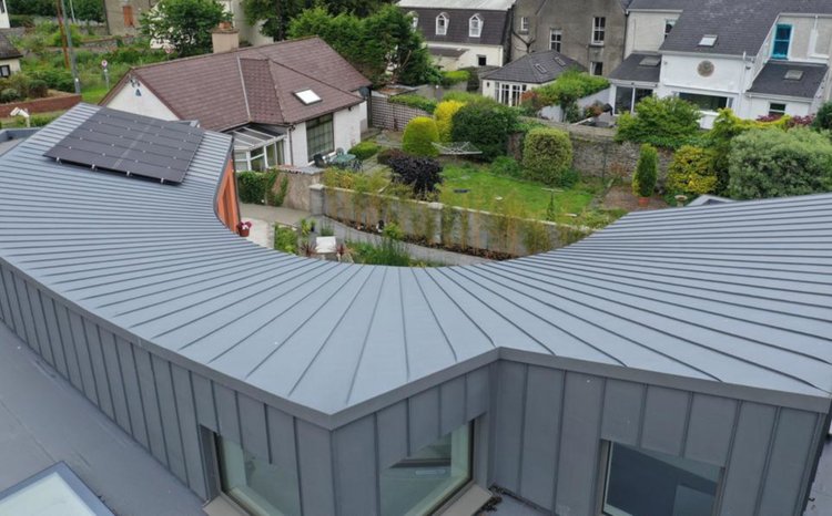 This timber-frame home was a new build on a confined site in a mature, built up suburb of Limerick. The unconventional design by Studiomove Architects has the house wrapped around three sides of the site, with views centred on the east-facing courtyard. A particular feature of this project was the focus on minimal use of resources and on energy efficiency, to attain performance as close to passive house standard as possible. Solar PV panels on the roof provide carbon-neutral electricity . This modern, but understated design of this new build fits in well with the surroundings and the older neighbouring houses.