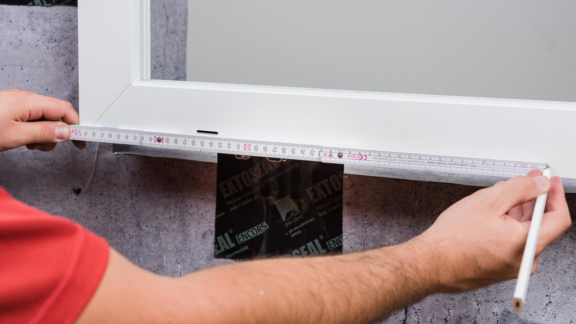 Mark out the centre of the window in order to ensure that EXTOSEAL ENCORS extends by the same length on either side.