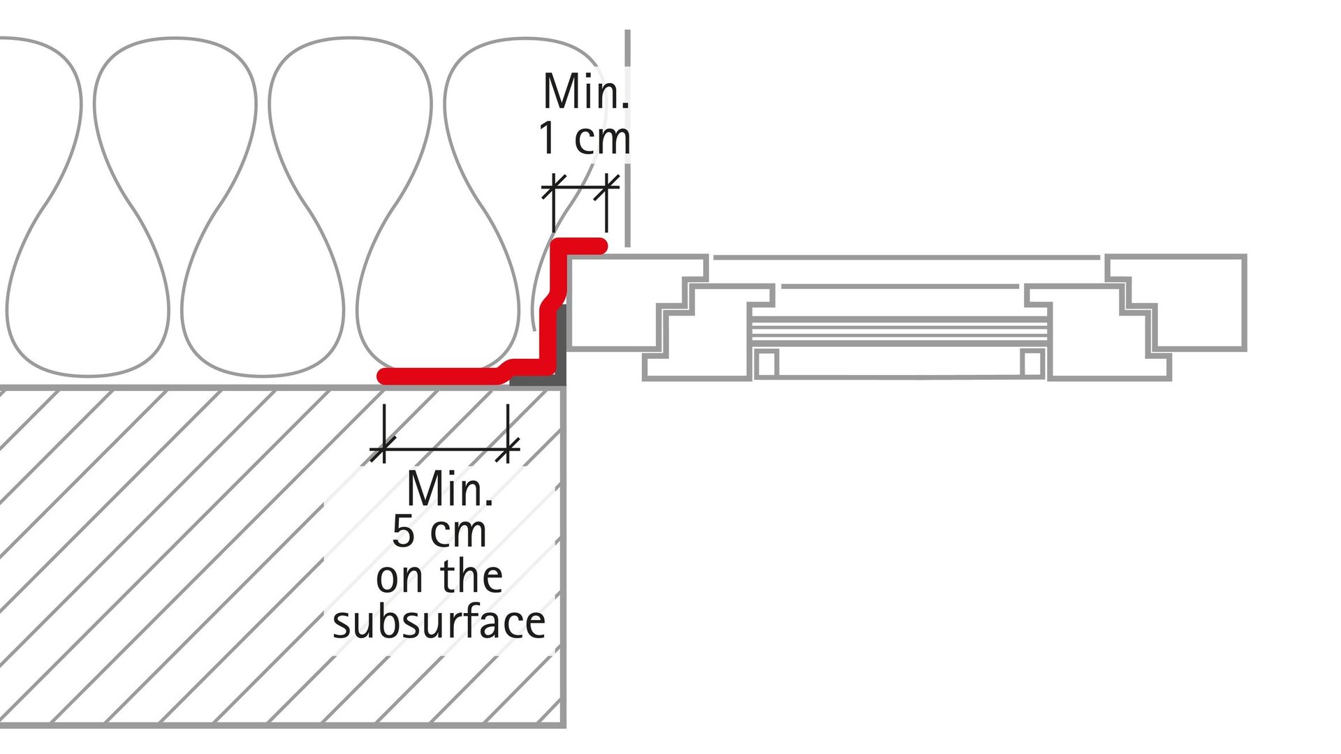 Brackets should be taped in such a way that a minimum width of 5 cm (2”) is achieved for adhesion to the subsurface. In this case, EXTOSEAL ENCORS may be applied in a number of sections, which must overlap by at least 2 cm (3/4”).