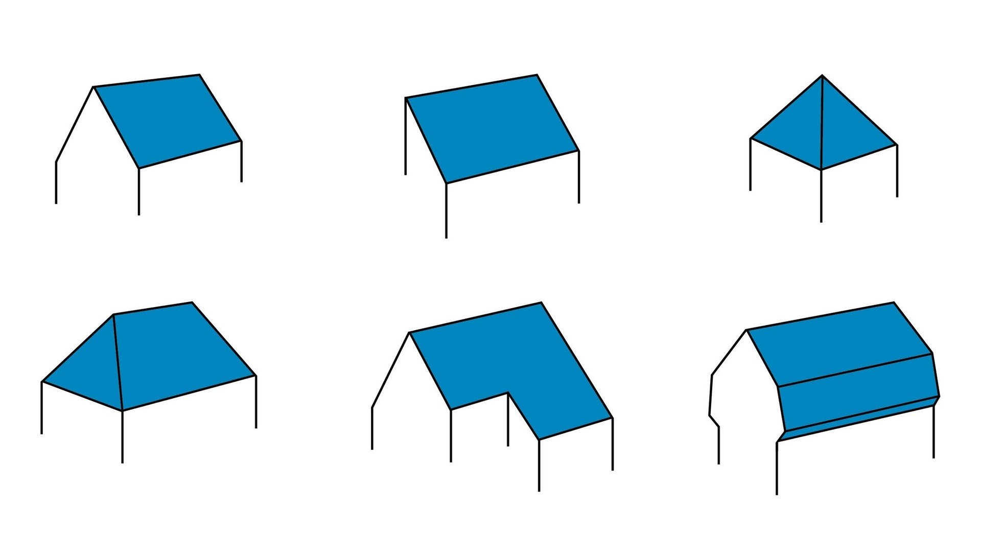 What type of roof is involved? Gable roof, pitch roof, tented roof, etc. Please specify the type of roof and provide an outline sketch of the roof with the actual lengths and surface areas.