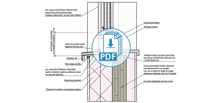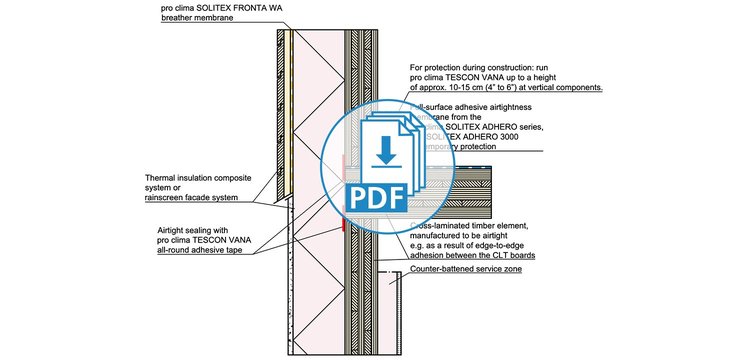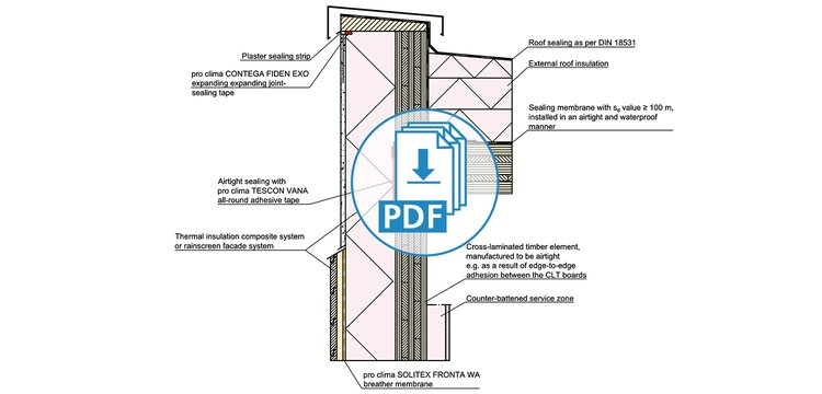 These drawings have been translated into English from German, but still feature our product recommendations for the German market. Not all of these products are available in all markets; please consult your local distributor for alternative products. Please take into account the Notes on the use of pro clima CAD drawings. By downloading any of the files here, you automatically consent to the contents of these Notes.