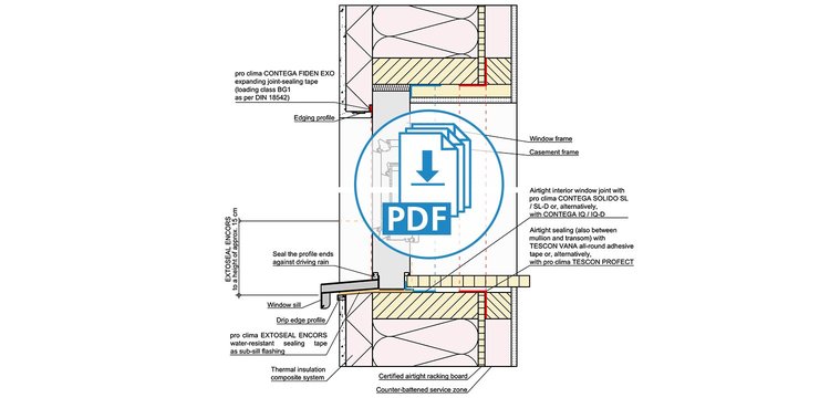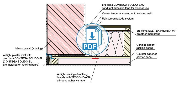 These drawings have been translated into English from German, but still feature our product recommendations for the German market. Not all of these products are available in all markets; please consult your local distributor for alternative products. Please take into account the Notes on the use of pro clima CAD drawings. By downloading any of the files here, you automatically consent to the contents of these Notes.